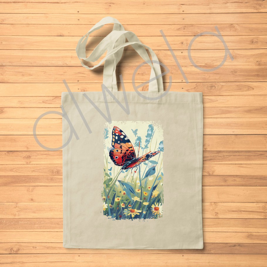 Vintage esintiler taşıyan bu eşsiz ekru ham bez tote çanta ile doğanın zarafetini yanınızda taşıyın. Çantanın orta kısmında yer alan, canlı renklerdeki kelebek ve çiçek baskısı, adeta bir sanat eserini andırıyor. Hem dayanıklı hem de çevre dostu olan bu ç