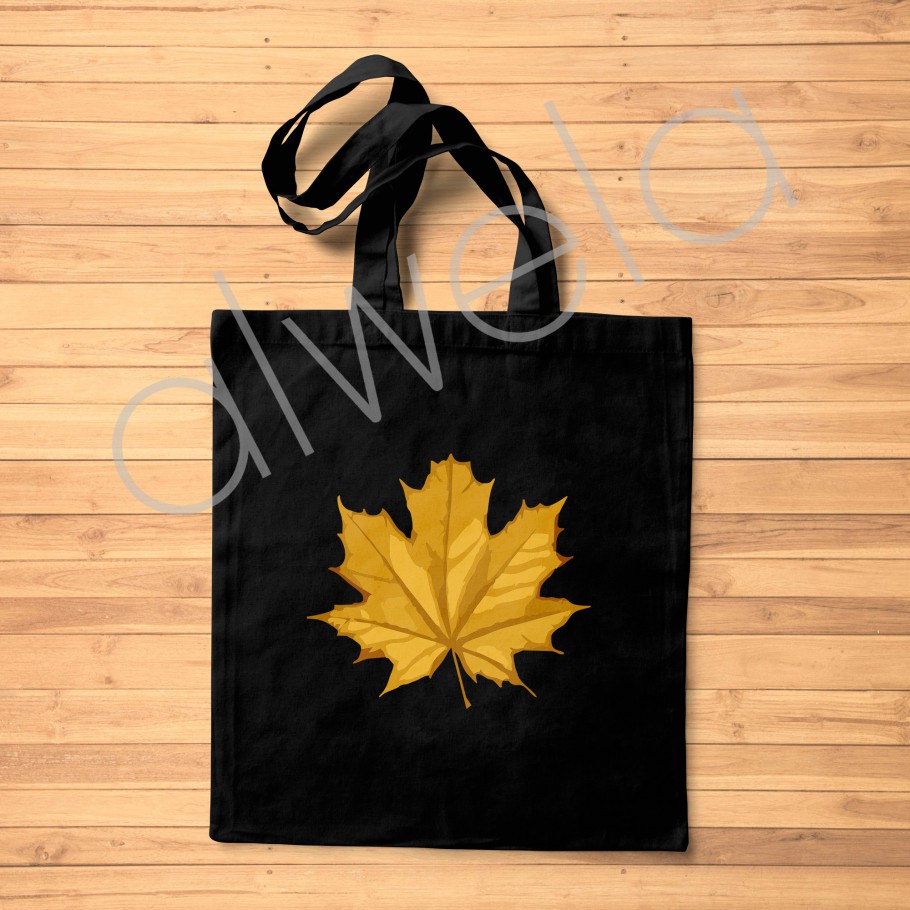Sonbahar stilinizi tamamlayın! Akağaç yaprağı baskılı siyah omuz askılı bez tote çanta ile hem şık hem çevre dostu. Günlük kullanım için ideal, şimdi keşfedin!