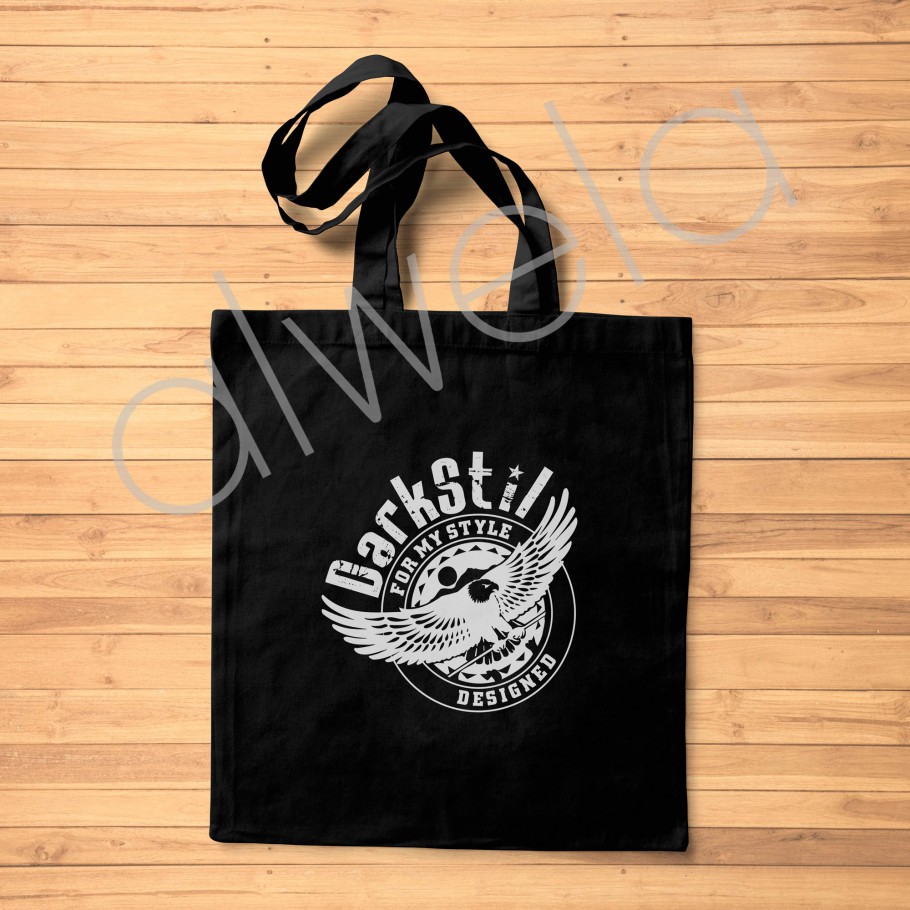 DarkStil marka, kartal baskılı siyah bez çanta. Omuz askılı, dayanıklı ve şık tote çanta arayanlar için mükemmel seçim. En yeni koleksiyon ürünümüzle stilinize güç katın.